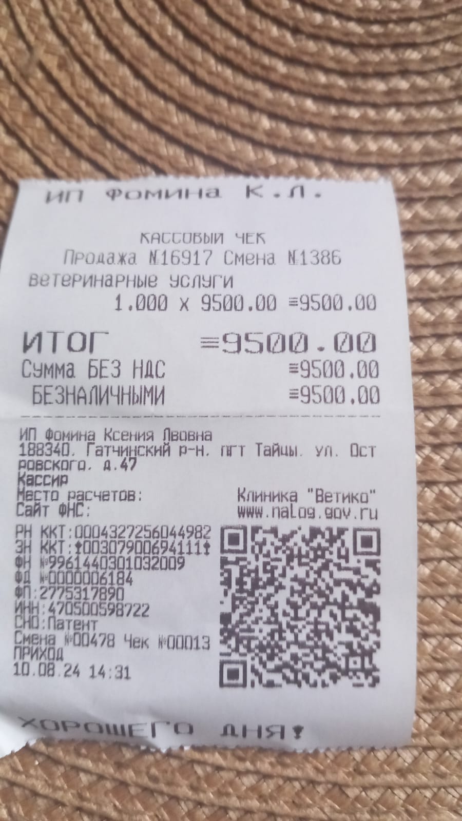 Чеки за вчерашнюю операцию и капельницу сегодня.