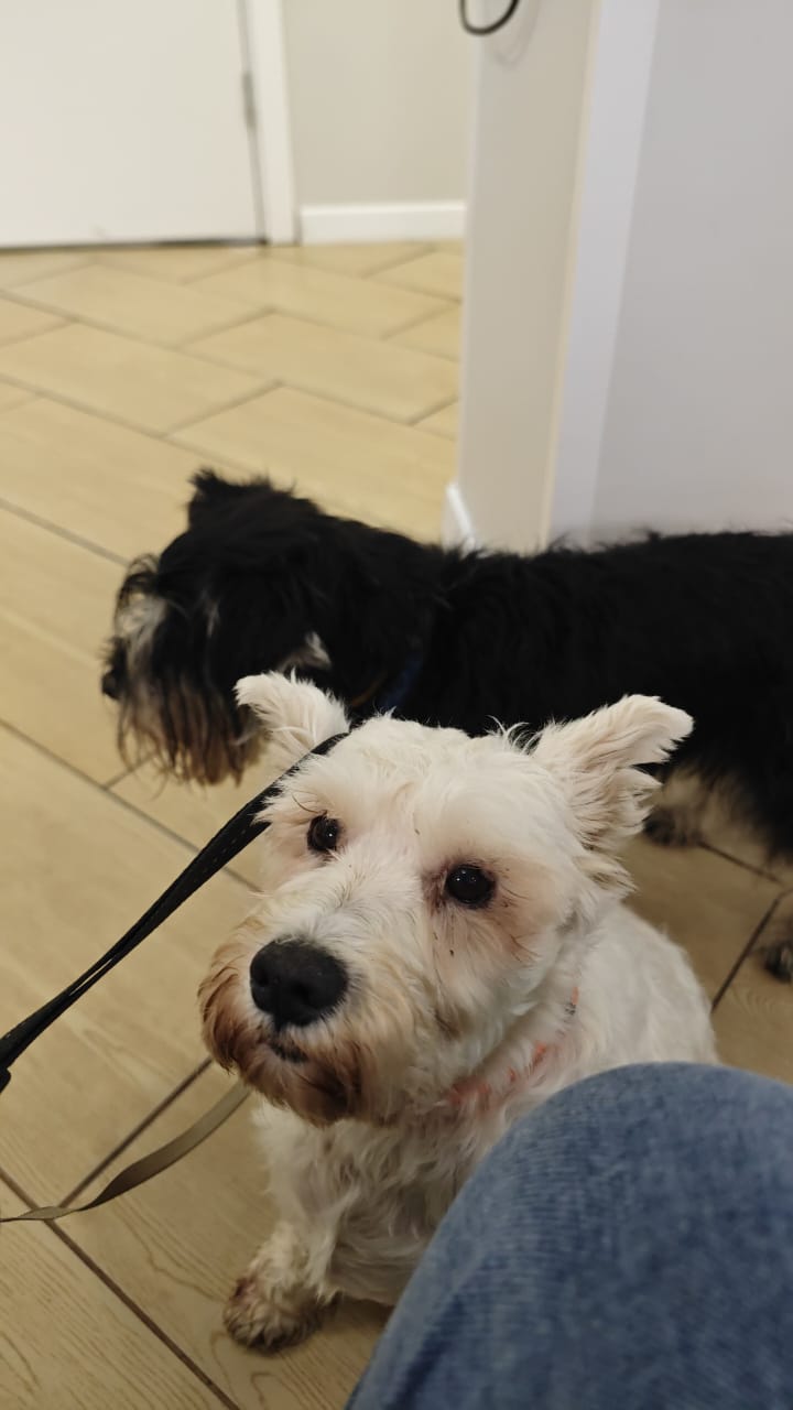 Моника- белая цвергушка 11 лет, вес 12,1, 36 в холке (жирная, проблема с мочевым, под вопросом острый цистит)