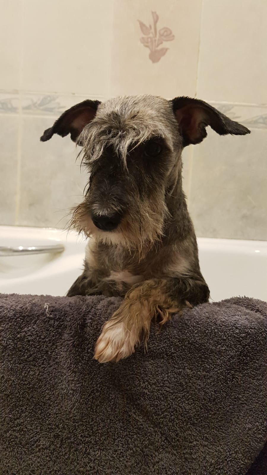 Итак о девице: чрезвычайно приятная морда бородатой наружности, мила, в меру обаятельна. Пребывала у Иро для стрижки. Все гигиенические манипуляции перенесла как истинная леди - с высокоподнятой мордой и одолжением. Ванна незнакома - но надо, так надо - договариваться готова. За жизнь при грумминге не борется.