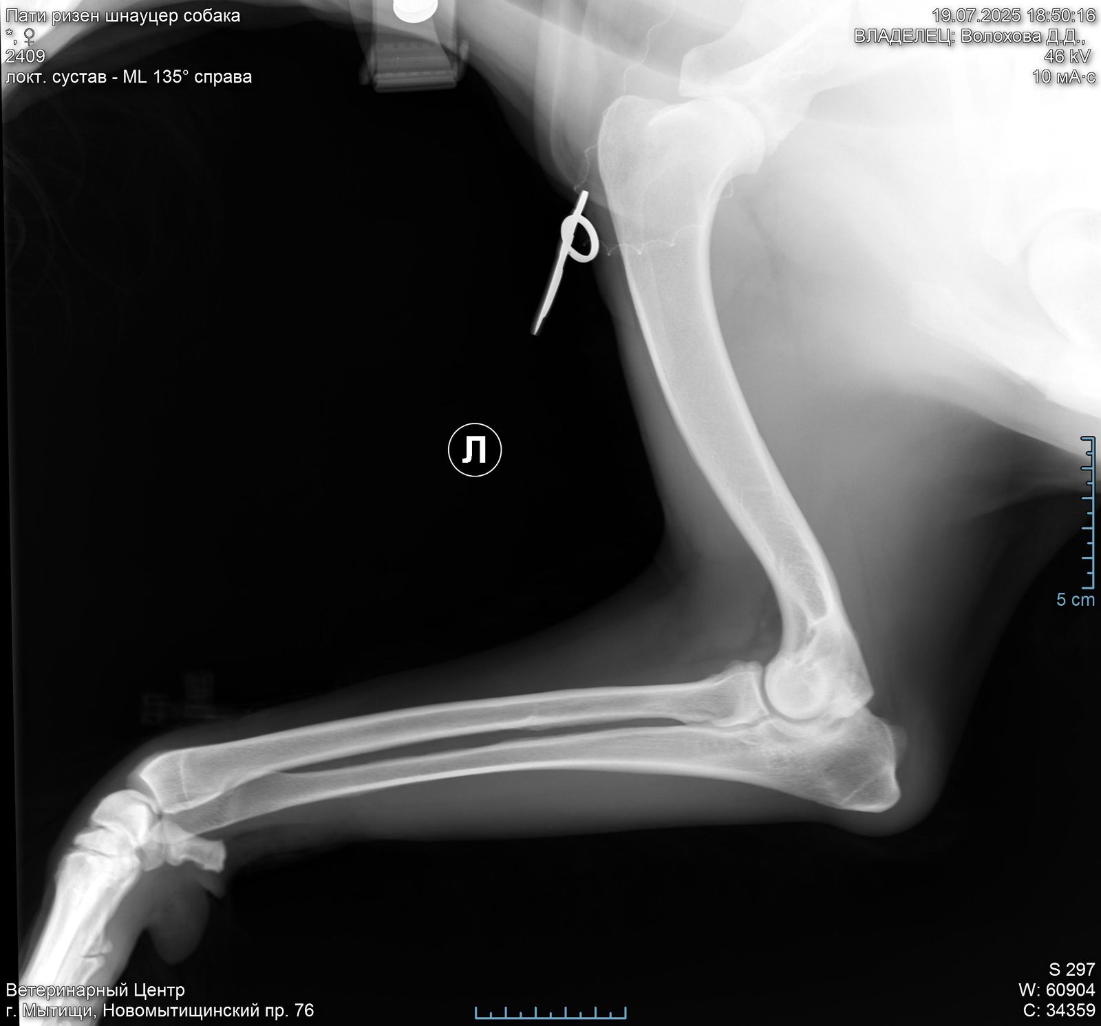 В правом локтевом суставе у Пати болтается 2 осколка кости( от мыщелков).