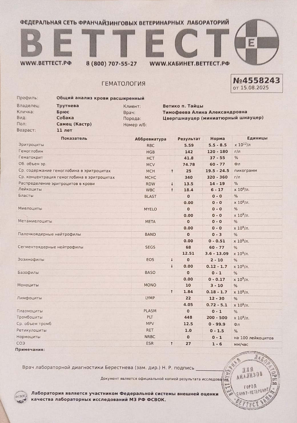 Анализы крови, клиника и биохимия