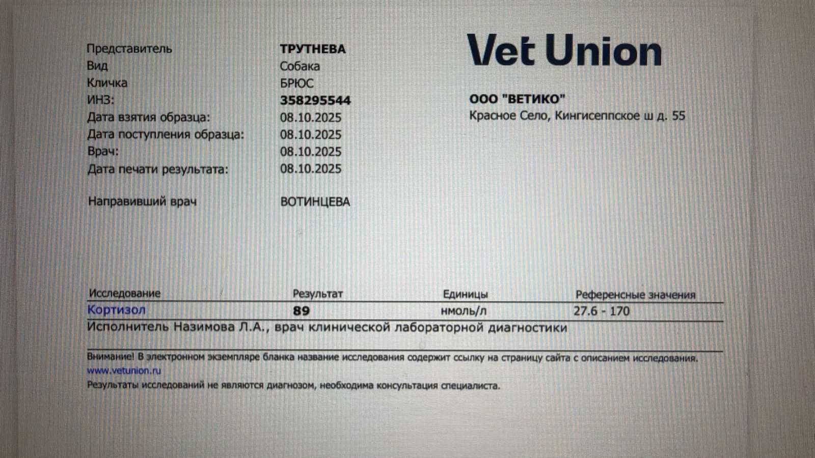 Анализ на кортизол, все норм, значит веторил работает, дозировка подходит.