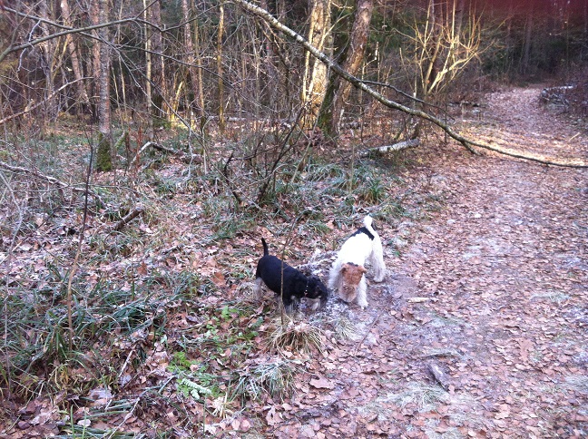 Это мы в субботу 22.11 гуляем в лесу со старшим внуком, Ирсой и Плюшей.