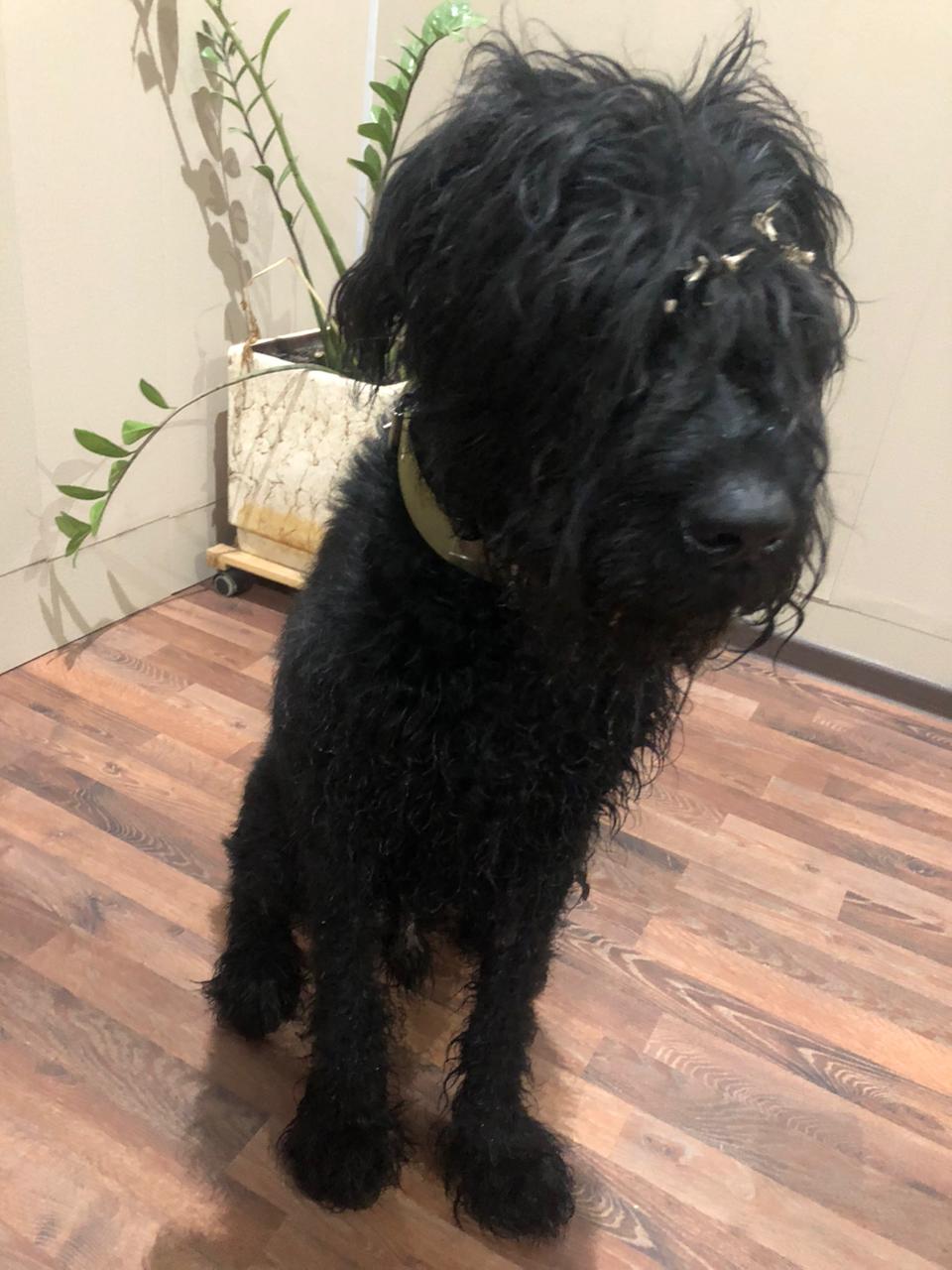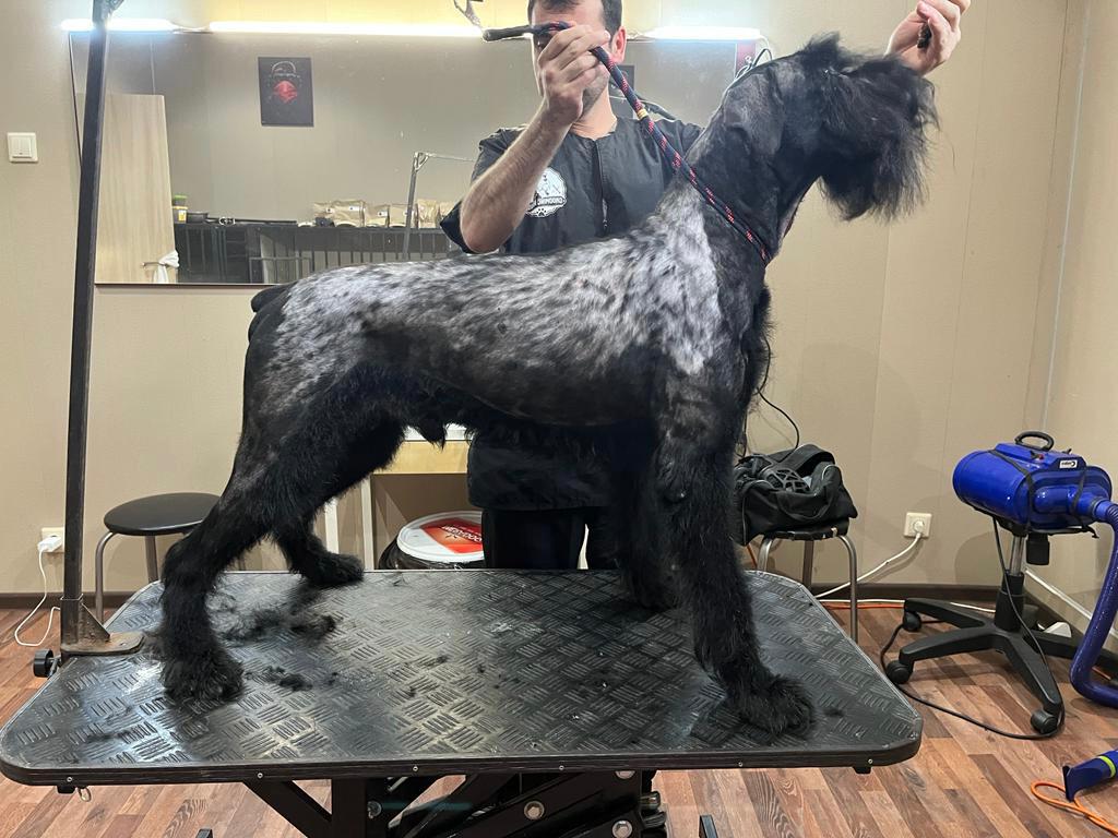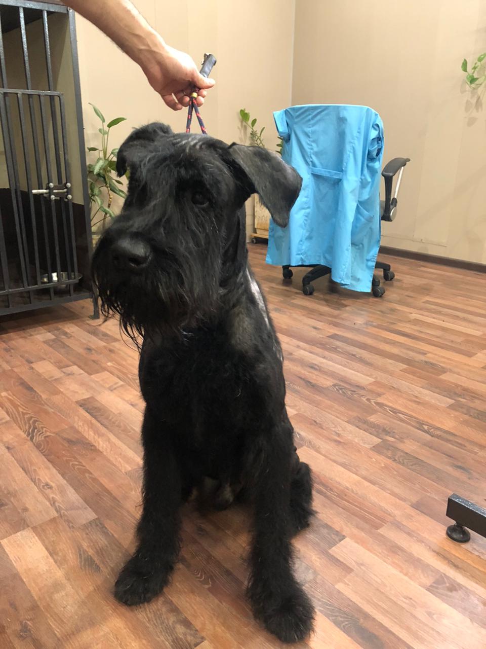 Михаил прогулялся с ризенякой и поехали в ночи на передержку к Екатерине. И Михаил, и Катя сказали, что парень адекватный и покладистый. У Кати поел, сделал заплыв в пруду и завалился спать. Устал мальчик наш. К обеду Катерина с Захаром начали наводить красоту мохнорылу и нашли четкое клеймо! Катя, Захар! Спасибо за вашу работу и золотые руки!
