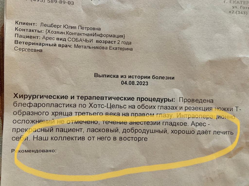 Добрый день! У нас все хорошо. Глазки красивые- пришлю фото чуть позже) Уши делаем 31.08. И , конечно, он уже дома)