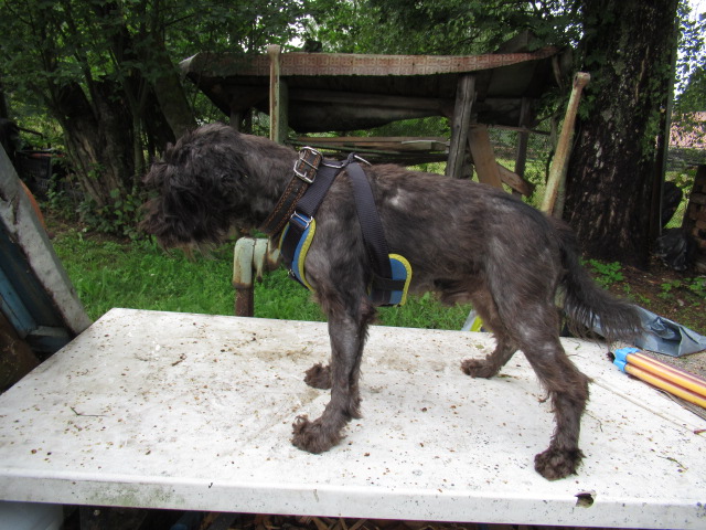 И пока "счастье" было в ступоре, мы с дочерью( у Ирины текут суки и счастье оказавшееся кобелём -пока у нас) помыли ,побрили, выстригли колтуны из ушей и между пальцами, подстригли когти))
