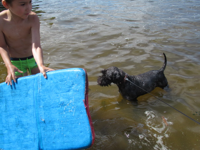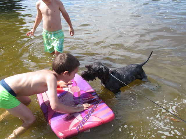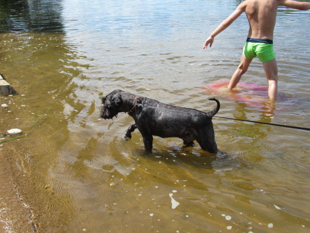 Денёчек наш "разгуливается")))!! Сегодня с Сашей и детьми дважды ходил на речку!!)) Бежал впереди с поднятым хвостиком!!)) В воду пока не пошёл)) испугался волн , но это ерунда )) научится))) А вечером уже и между собак хвостик не совсем опустил))),хоть и поторопился смыться в свою комнату)))