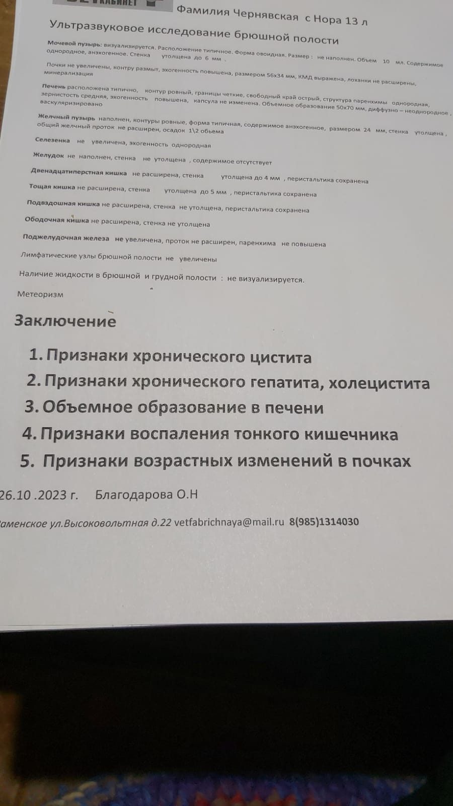 У нас Циститище. Сначала 2 недели его лечим,потом опять на узи. Анализы сдали,ждем результатов. ОМЖ,пока ничего криминального.
