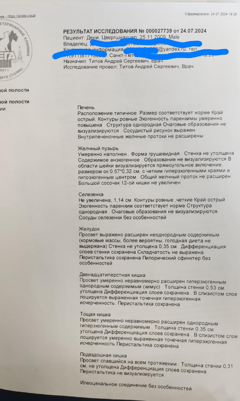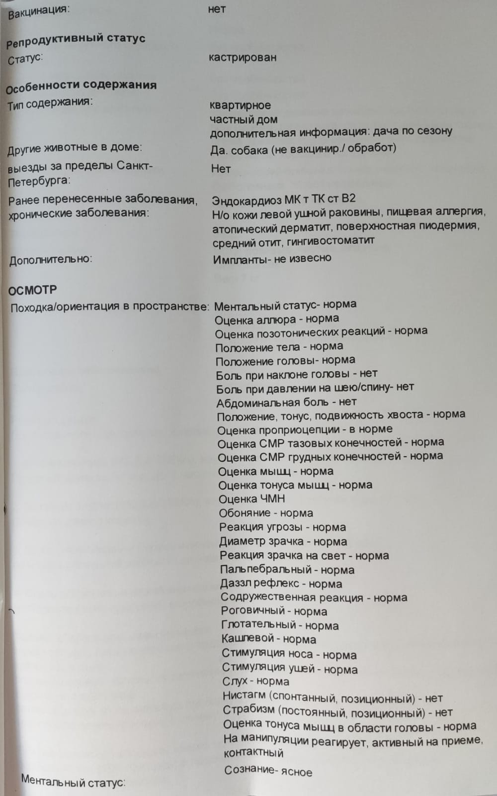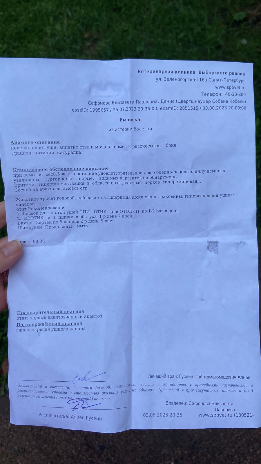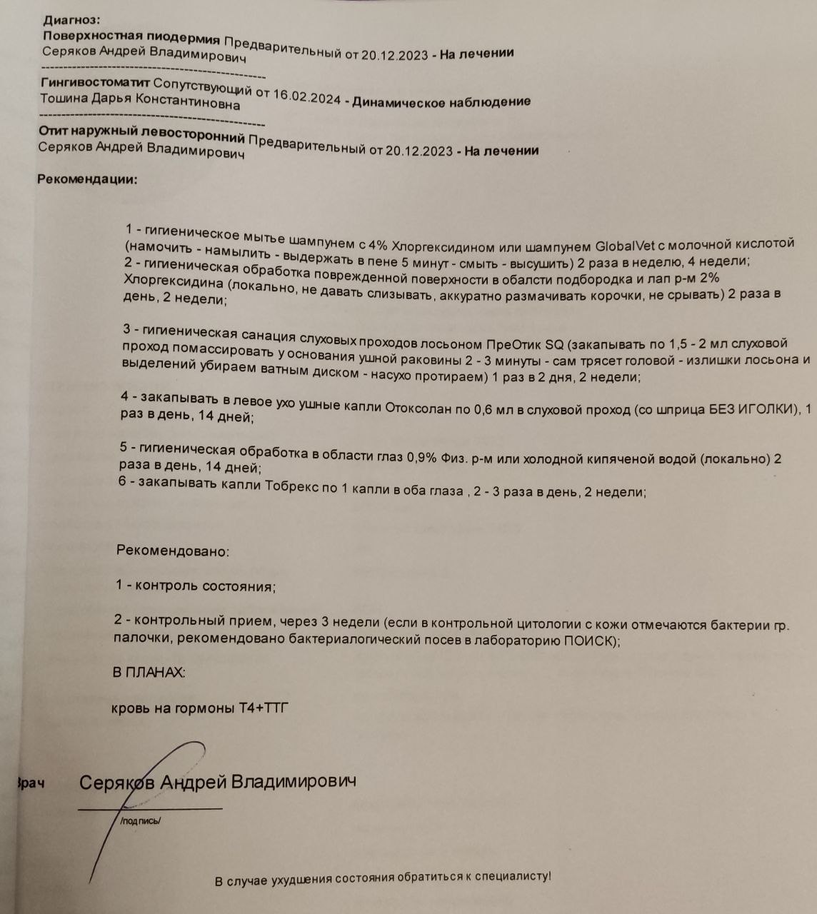 Повторный прием дерматолога. Палок вдвое меньше, но опухоль уха в постоянном воспалении(