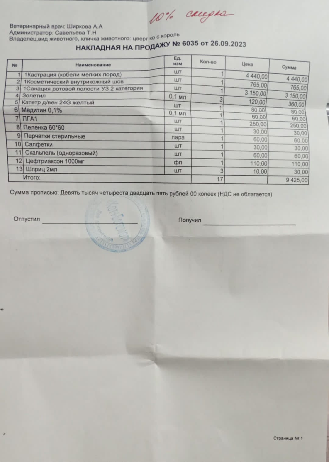 Ф.И.О. ветврача: Коробов Сергей Сергеевич