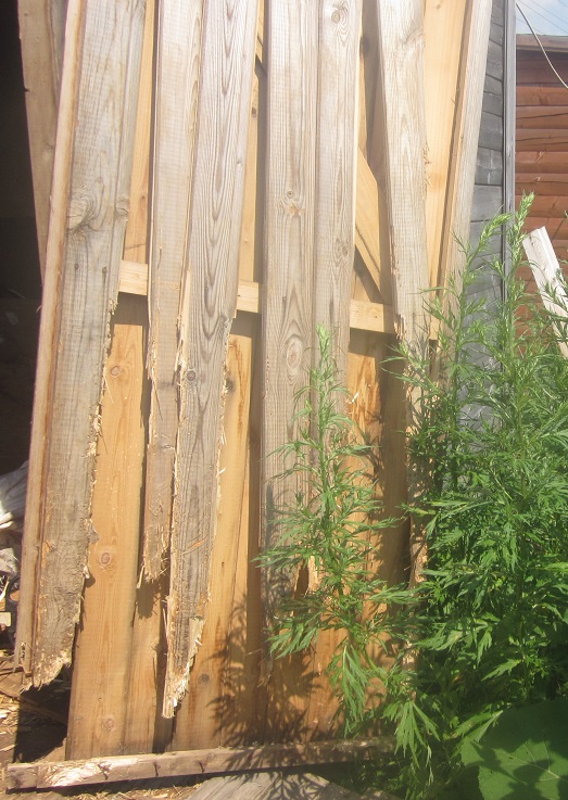 Баррикада из дров у калитки- это мы пытались хоть как-то оставить его на той половине... Пролез...
