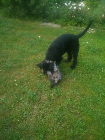 Спасибки! Девонька - сплошной позитив!!!! За Саней хвостиком ходит! Аппетит ограничиваю! Утром творог с иогуртом агушей, вечером мясо с овощами. Только порции разные. Саню выматывает с играми, только и носятся по участку!!!! С кошкой еще напряг, гоняет! Но уже вчера от нее получила по морде! Масяня Саню выстроила, так что я не переживаю.