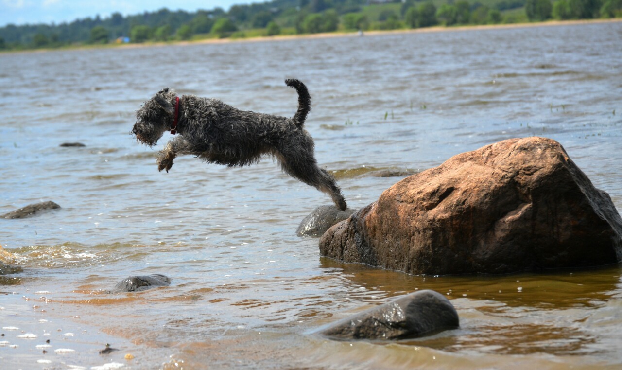 Замечательная мохнаточка! Как с камня в воду прыгает - прям олень! И уши взлетающие и встающие при беге - тоже классно. :yes: