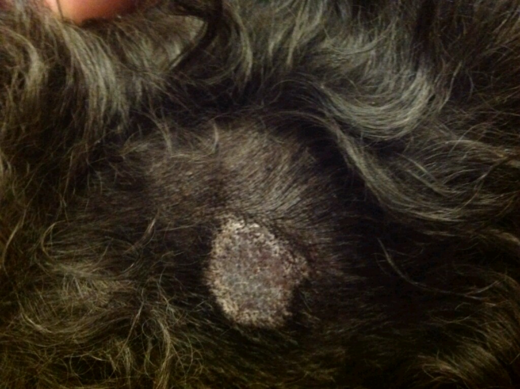Непонятно состояние кожи без шерсти. Что там - сухое пятно с потрескавшейся кожей или просто область без шерсти?