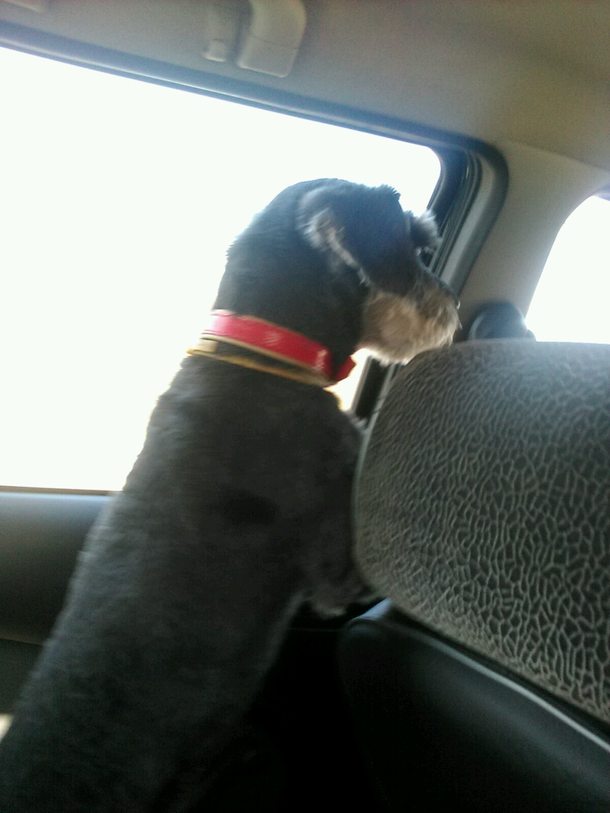 В машине ехал 4 часа стоя!!! Я думала , что следит за дорогой, а потом поняла - из водительского окна ветерок, так вот он и морду поставлял!!!!