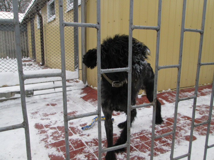 Сегодня ездили к Яну в гости, с Светланой А. Н. и Светланой Manyasha. Ян за неделю слегка отъелся, хорошо реагирует на вкусняшки, с Светланой А. Н. заходили к нему в вольер, буквально на 5 минут, парень себе на уме, пыталась его погладить по спине, Ян в ответ пытался меня укусить. Марина, хозяйка передержки говорит, что Ян вообще не дает к себе прикасаться. Хорошо реагирует на кликер, похоже знает команды, команду сидеть выполнил с 20 раза, с рук лакомство давать невозможно, съедает вместе с руками. Буду стараться ездить к нему каждые выходные, что бы Ян привыкал. Стерты все четыре клыка примерно на 5мм. Когда парень наест мышечную массу, будет отличный кобель ризена. Руки прямо чешутся привести морду в порядок, но увы пока это не возможно. Ян очень активный и легко возбудимый. Мое мнение адаптироваться Ян будем не меньше 2-3 месяцев.