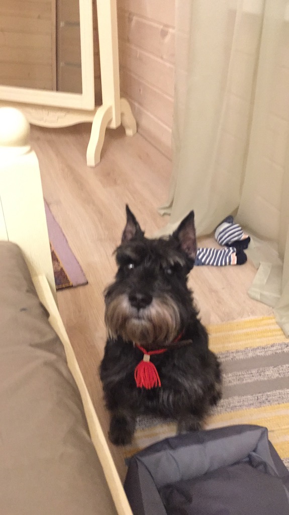 Удивительно, но Йоки на всех фото из нового дома совершенно не похож на стрессующего от переезда пса. Наверное, он очень рад избавиться от нашего семейства :laugh: