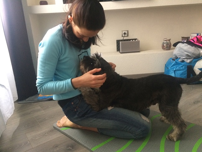 Но я ее на тримминг сейчас вожу в компании с Семеном она так себя чувствует спокойней.Семка то рядом...А на меня обижается и потом не разговаривает со мной.Искупаю свою вину за тримминг бубличками