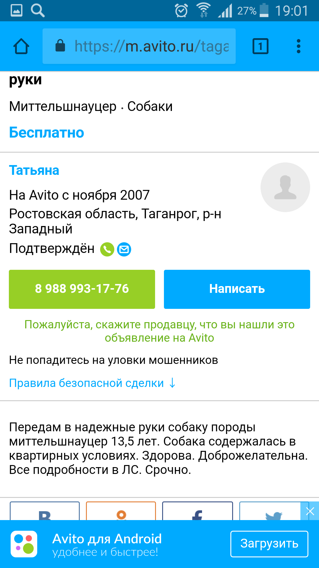 Таганрог. Отдают 13-летнюю суку миттеля... https://www.avito.ru/taganrog/sobaki/v_ ... 1101109525