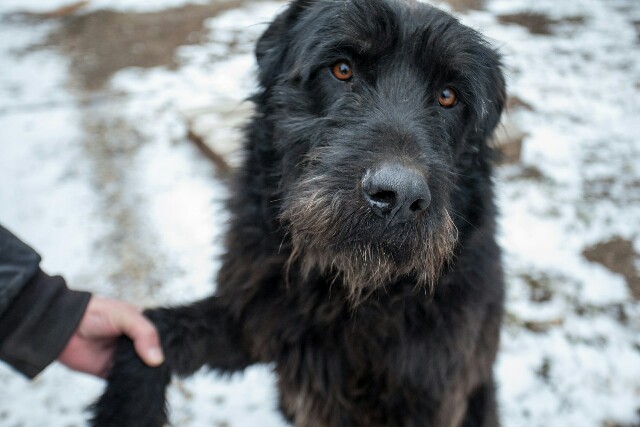 "Ищу нового хозяина для кобеля ризеншнауцера Армальд Орлано Блэк (Глорис Карден +Армальд Глория Григ), 3,5 года, окрас черный, уши не купированы, дрессирован, выставлялся на выставках (оценка Отлично), дружелюбен. В связи со смертью хозяина срочно ищем новую семью и любящих хозяев. Собака сейчас живет в питомнике в г. Серпухов, его можно будет забрать после 22 апреля. " (В тексте опечатка, на самом деле он Орландо)