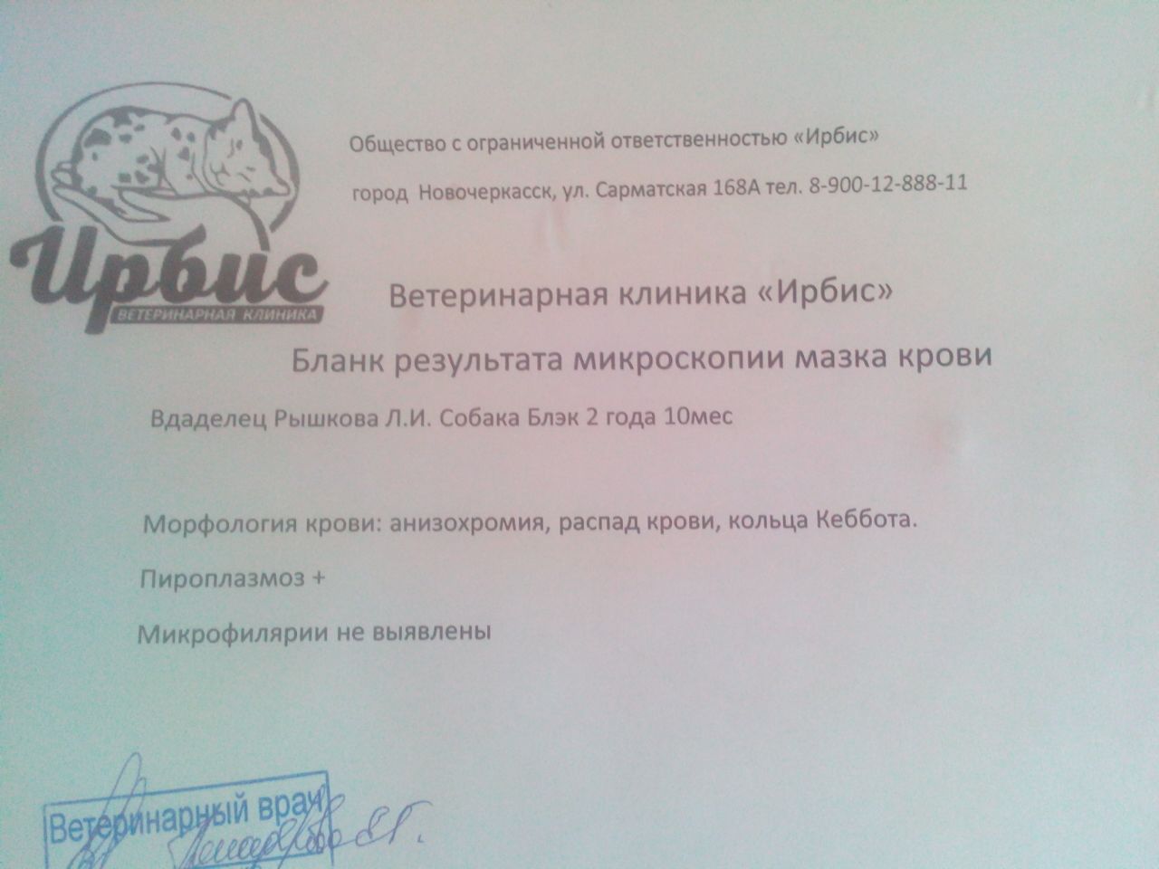 Поясню немного. Блэку укололи пиро стоп сегодня. Это есть в распечатке, которую я опубликовала. Возможность держать его изолированно в отдельном вольере тоже есть, я писала об этом. Людмила договорилась за 100 руб. в сутки. Если есть какие то вопросы, я буду узнавать и давать ответы на них. Людмила также сама позже здесь зарегистрируется и будет все рассказывать.