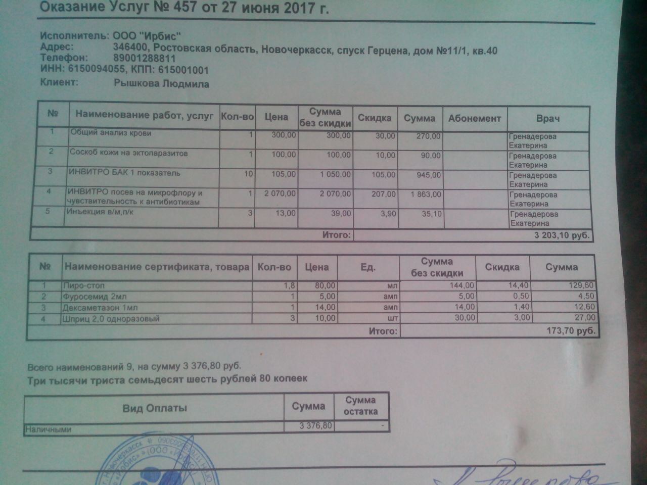 Наталья, какие назначения в ветклинике дали по итогам?