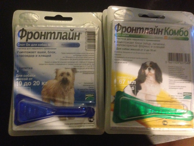 Есть Празицид для щенков, Прококс, упаковка Фронтлайн и 2 упаковки Фронтлайн Комбо.