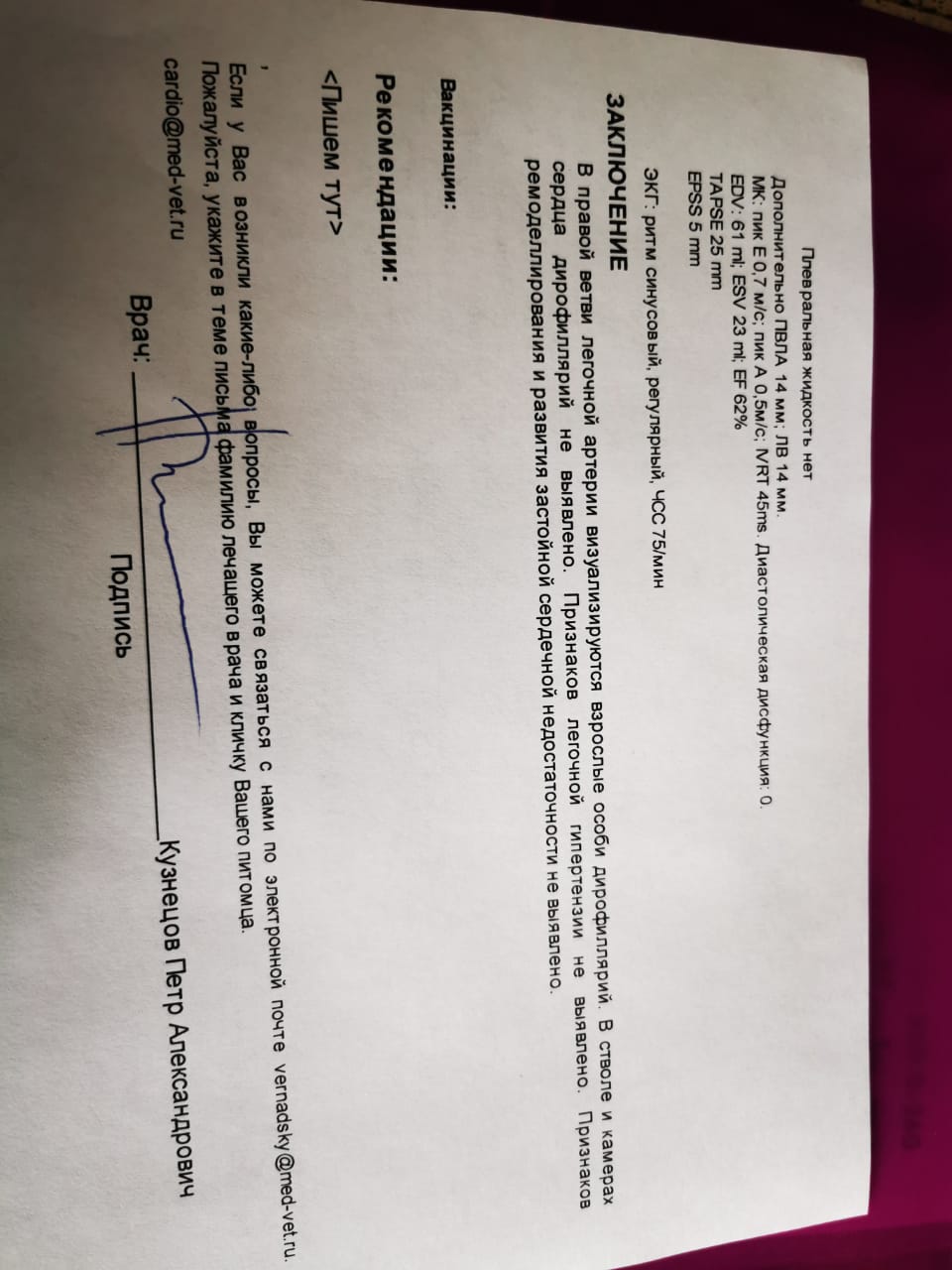 Лора посетила кардиолога. Кузнецов Петр Александрович.