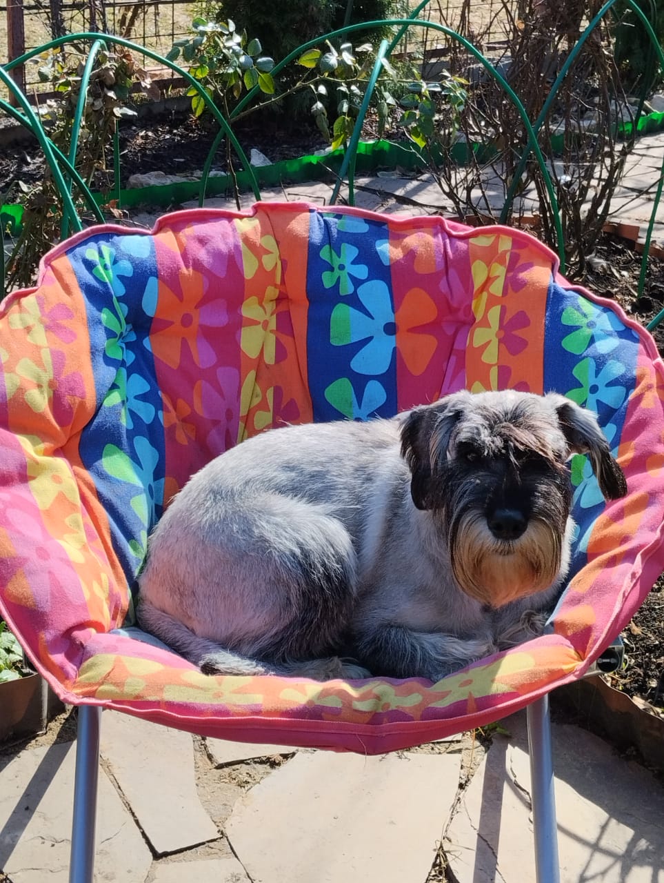 Цветочки то могли бы и подвинуть! Собаченьке тесно..