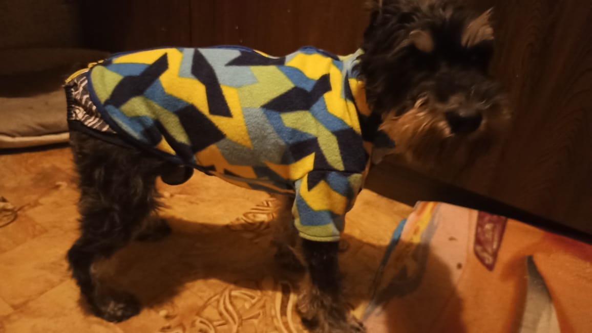 Галка переехала на передержку к Даше Петровой и тут же была наряжена со страшной силой, собаченька не мёрзнет, в общем