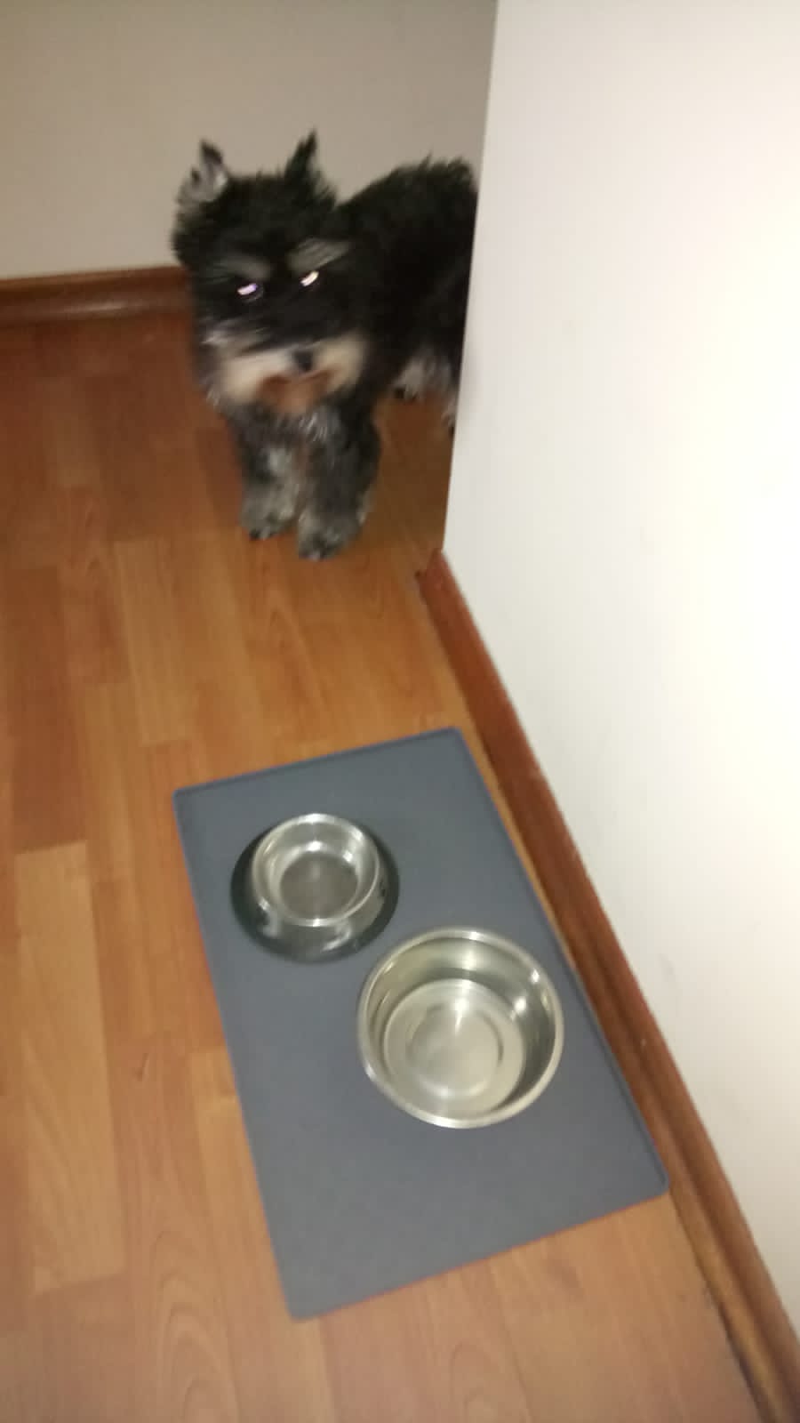 Фаби вернулась в прогулки. Ждёт завтрака.