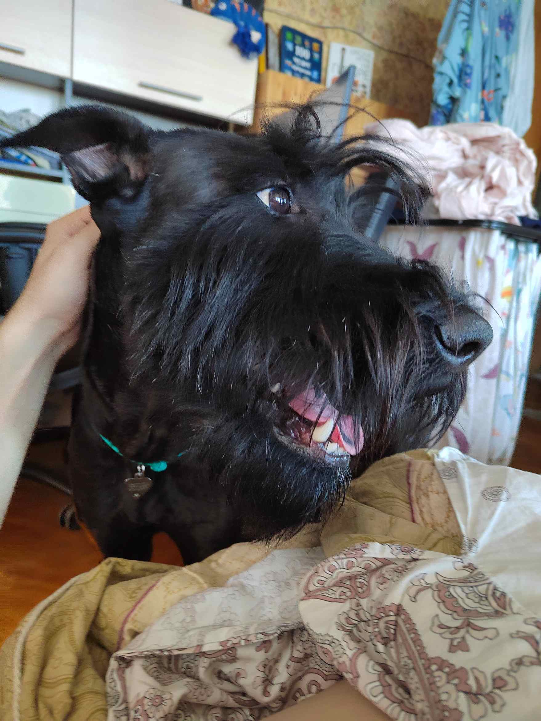 Ризененка привезли из Петербурга в Гусь-Хрустальный, там его продавала недорого девушка, у которой на него времени не было, видимо, подрощенного уже. Клейма, хозяйка говорит, нет. Зовут Ральф, д.р. 28.06.2023. Уши купированы, но не поставлены. Иногда сами встают на волне особого интереса.