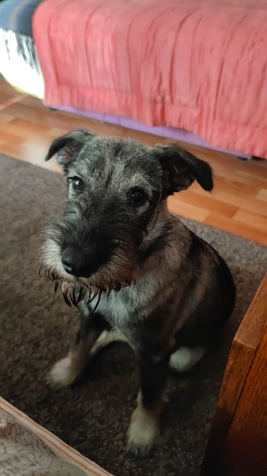 Это Белла. Почти 6 мес. Весит 11,8кг. Шерсть породная шнауцеринная. Но мягковата.. Отлично триммингуется👍 все прививки проставлены. От клещей обработана. Чипированна, есть вет.паспорт. Холерик 😉. Очень хорошо обучаема.