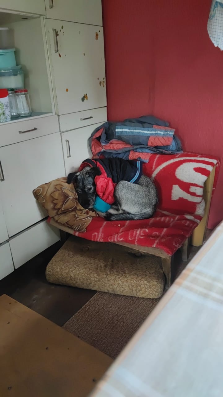 Ольга нашла передержку для малявки, недалеко от себя. У соседки два бодрых лабрадора и сейчас ещё пара дворняжек на передержке. Ну и вот нашу мелочь согласилась взять.