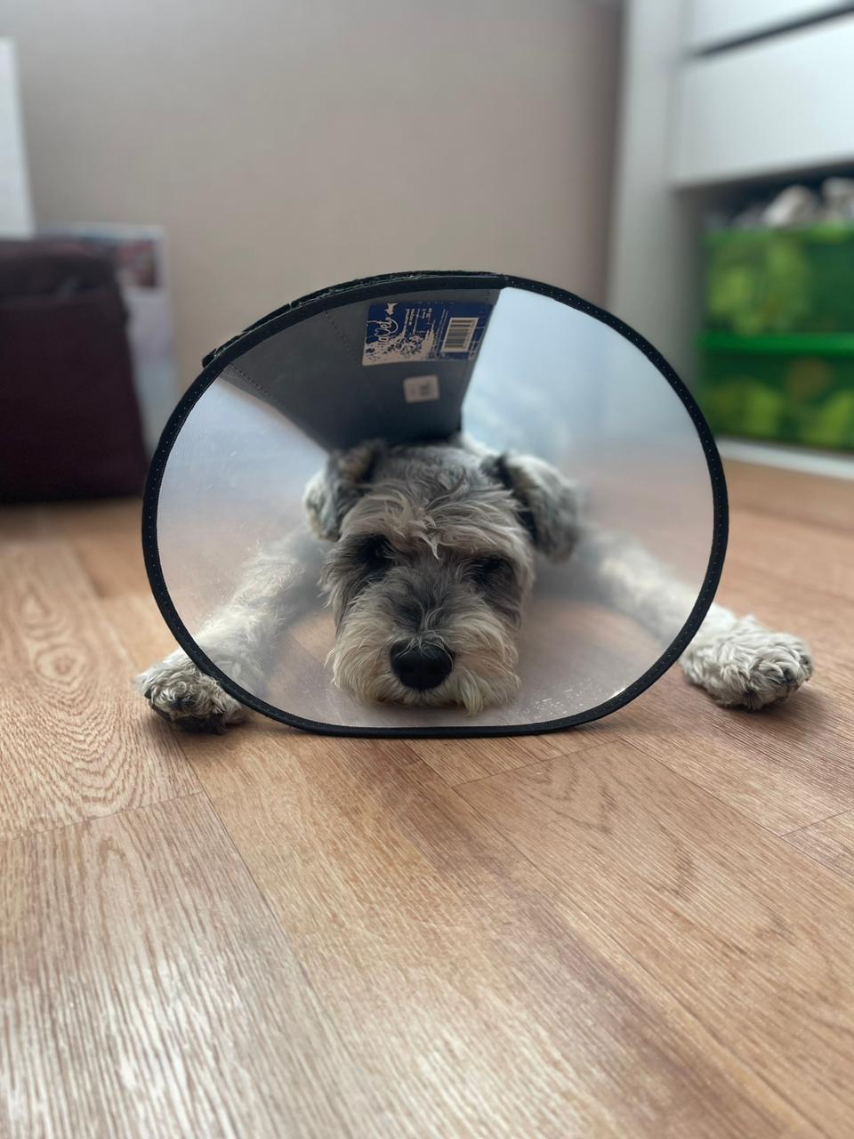 Анна, которая его нашла, водила его в ветклинику. Там его осмотрели, нашли отит и конъюктивит.