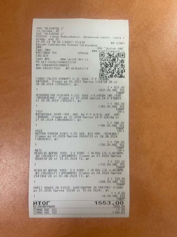 Чеки за визит к офтальмологу и лекарства.