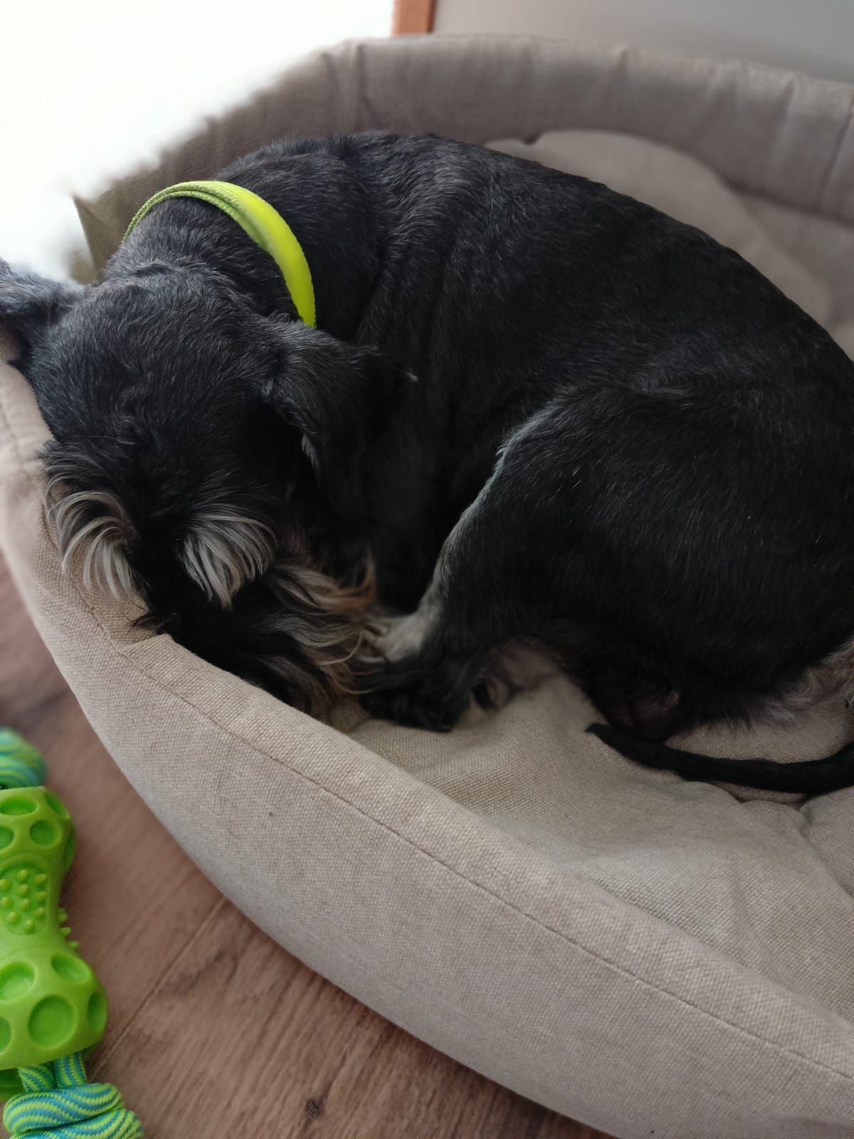 Елена, хозяйка цверги Агаты (одна из черных от Ершовой) прислала мне пост из какого-то домового чата что ли, что люди ищут руки цвергу 9-летнему. В общем, пообщалась я с отдающими, у них астма у ребенка, вынуждены искать дом собаке.