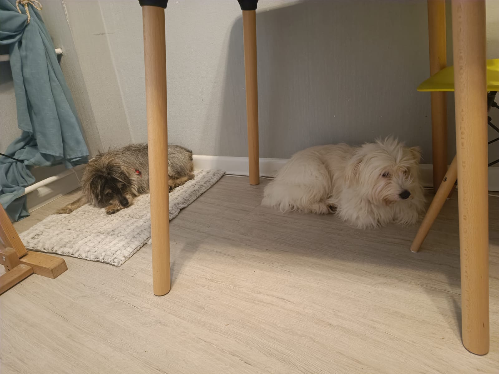 В первый день только лежала в лежанке, при чем не в своей а в Вариной. Гуляет, писает, какает. За вкусняшками приходит, когда другим даем. В общем все ок, только с собаками не общается.