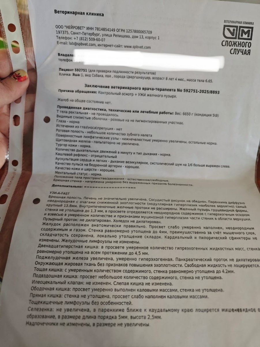 Забран 17 марта 2025 года из клиники, на десятый день после операции по извлечению инородки из кишечника.