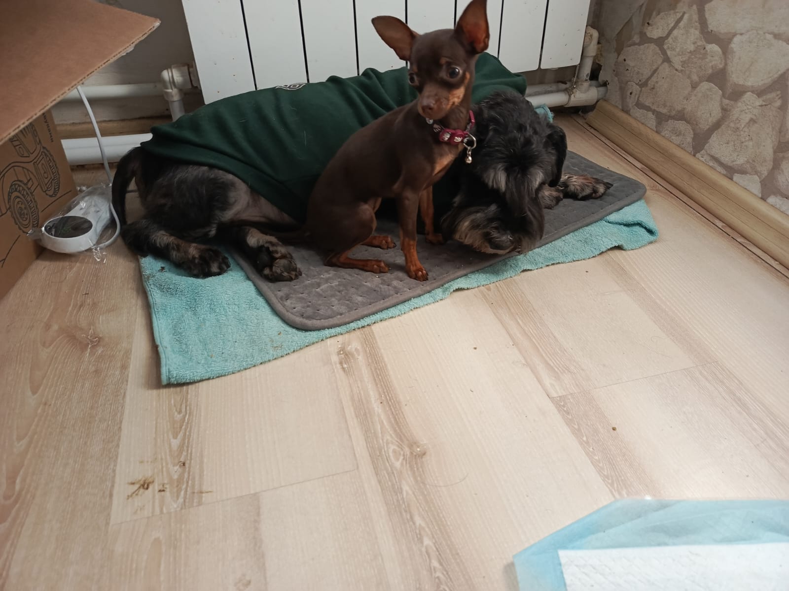 И электрический коврик, чтоб на холодном полу не лежал, он почему-то лежанку избегает. Коврик Арти понравился.