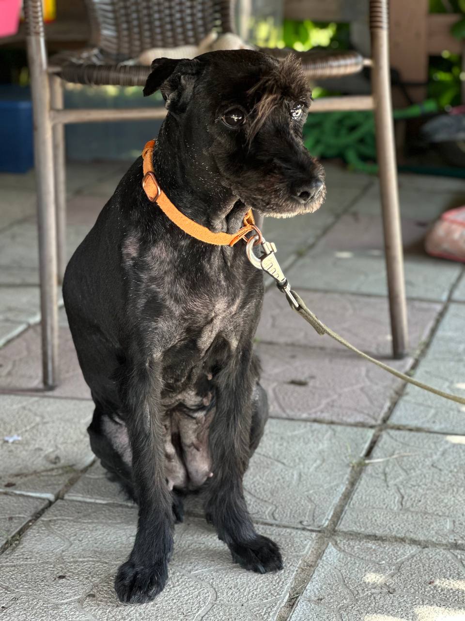 В петербургском отделении Фонда плюс одна собака - черная миттелька Лори, Достояние Прикамья Белора Барса. 9 лет, дата рождения 31.03.2016.