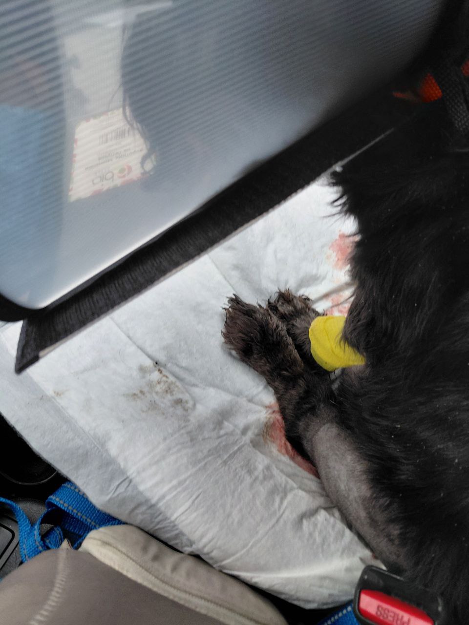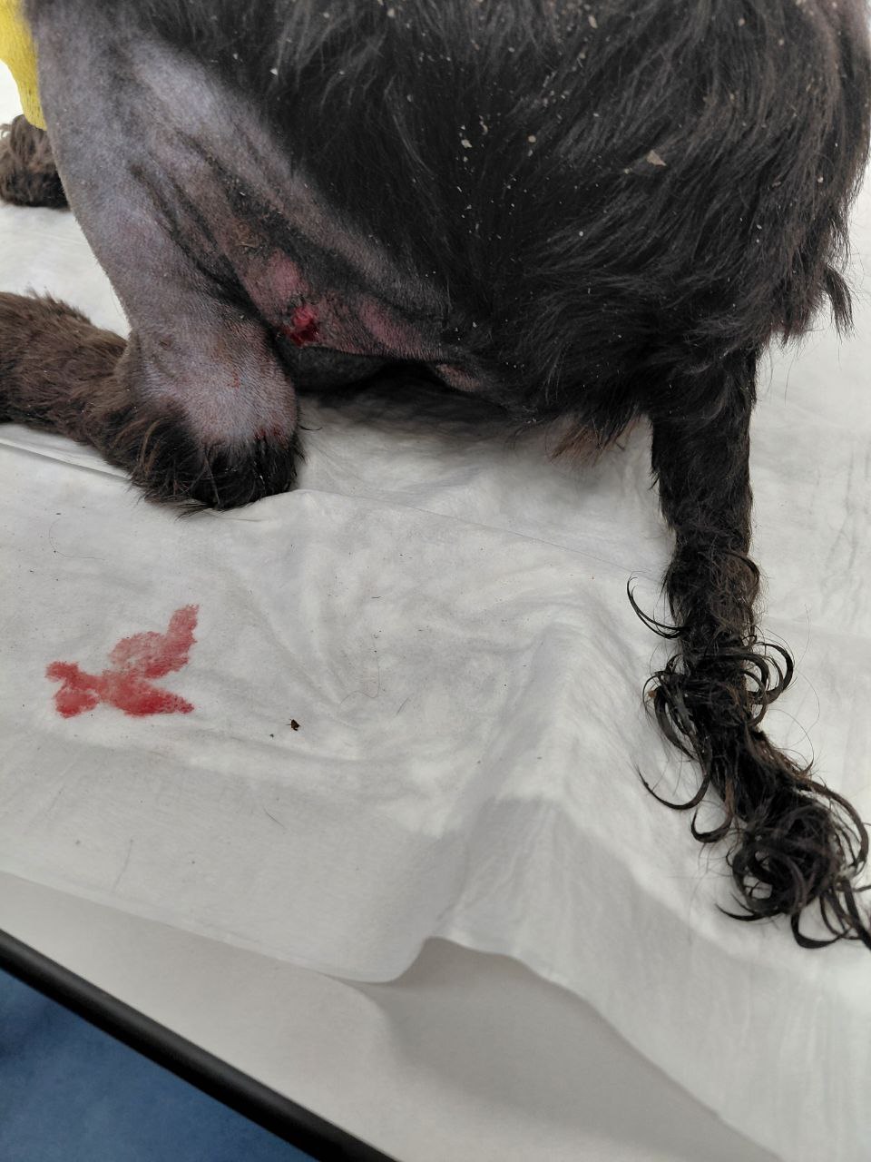 Рана на лапе затягивается, отек на суставе визуально спал (хотя там катетер еще под бинтом, может так кажется...) Из молочных пакетов (5-6) все еще выходит молоко с кровью (без гноя, вроде). Но ожидают, что в ближайшее время лактация остановится. Выделения из петли сохраняются (прозрачные).