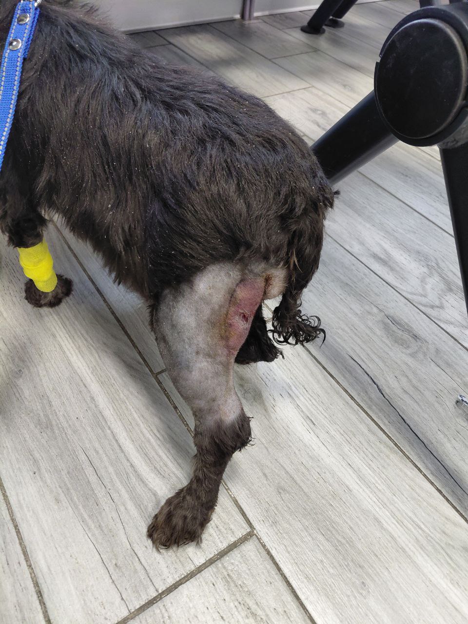Рана на бедре - к вечеру наблюдают положительную динамику, перестал выходить гной, есть выделение серомы. 3 раза в день приходят из хирургии для обработки раны. Собака к вечеру также начала более уверено двигаться, а с утра берегла лапу - тяжело ходила на 3х, либо отказывалась двигаться.