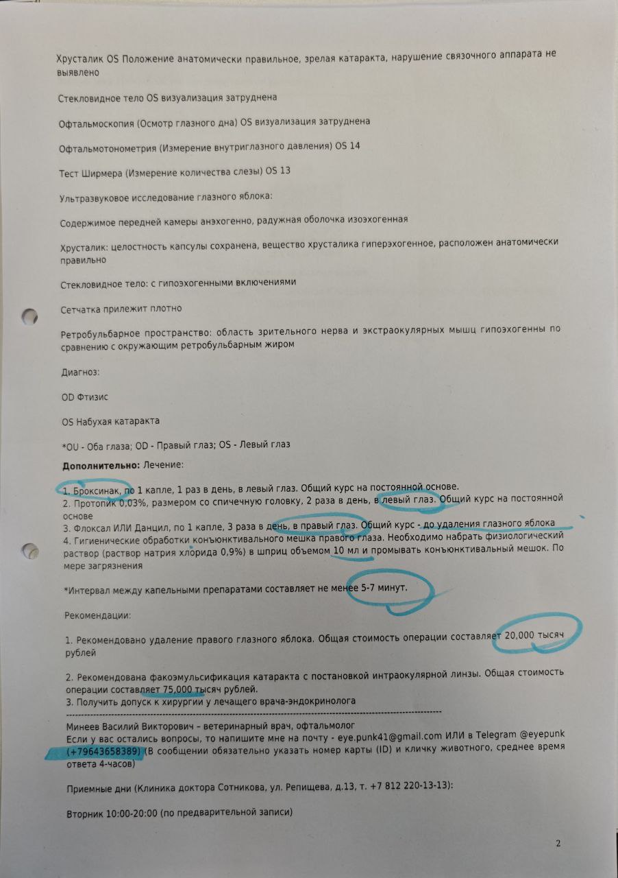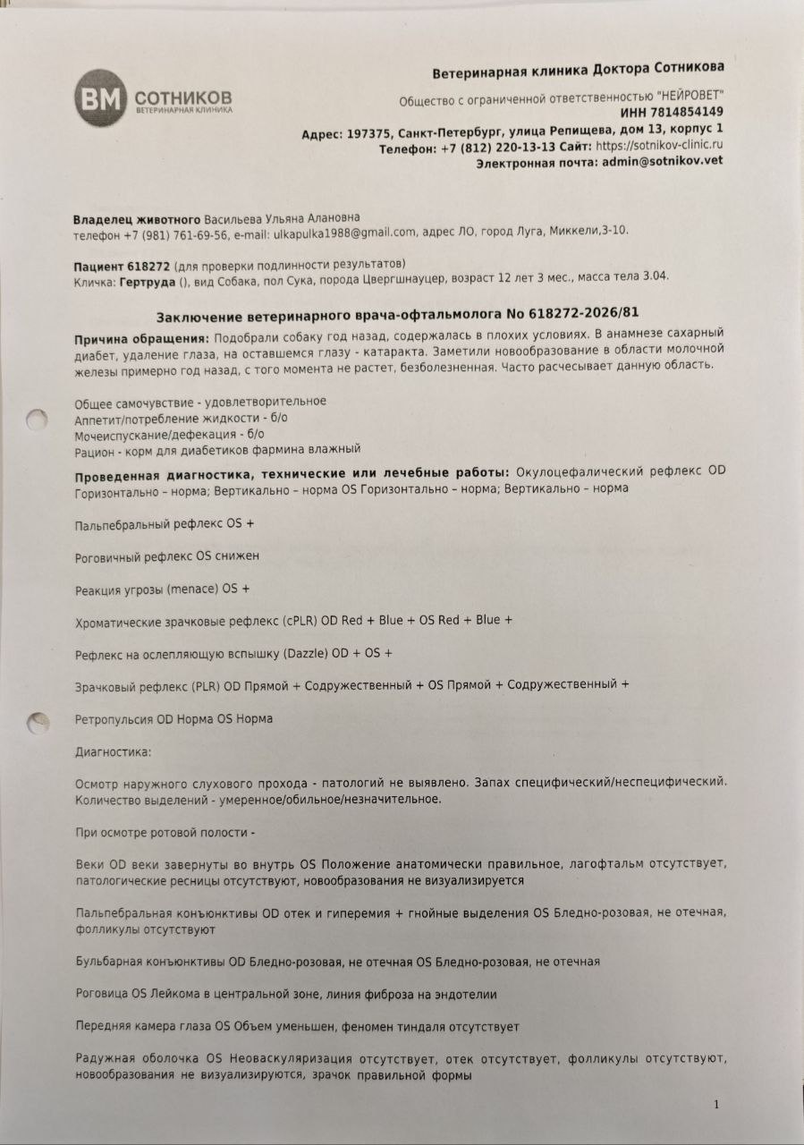 Потом попали к офтальмологу. Глазик можно удалить при стабильном инсулине. Одновременно можно ее стерилизовать, есть вероятность что диабет у нее из за работы яичников. Для этого надо попасть к эндокринологу. Возьмем онлайн консультацию и будем двигаться дальше. Второй глазик с катарактой, можно заменить хрусталик и появятся шансы что она будет видеть. Но можно так же получить осложнения. И это уже вторая операция, одновременно с удалением и стерилизацией это не сделать...