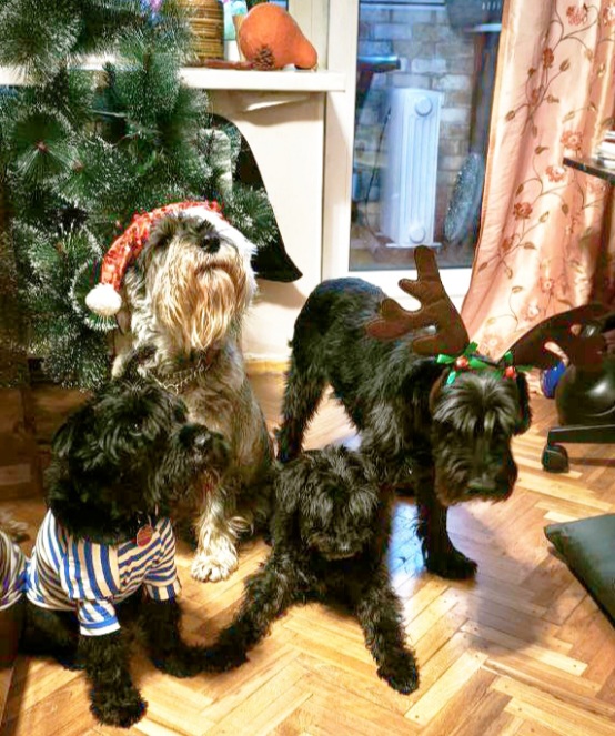 Дэни, Яша, Изабелла, Грета - новогодний квартет под ёлочкой:) Или вариация "подайте на домики для бездооомных поросят"
