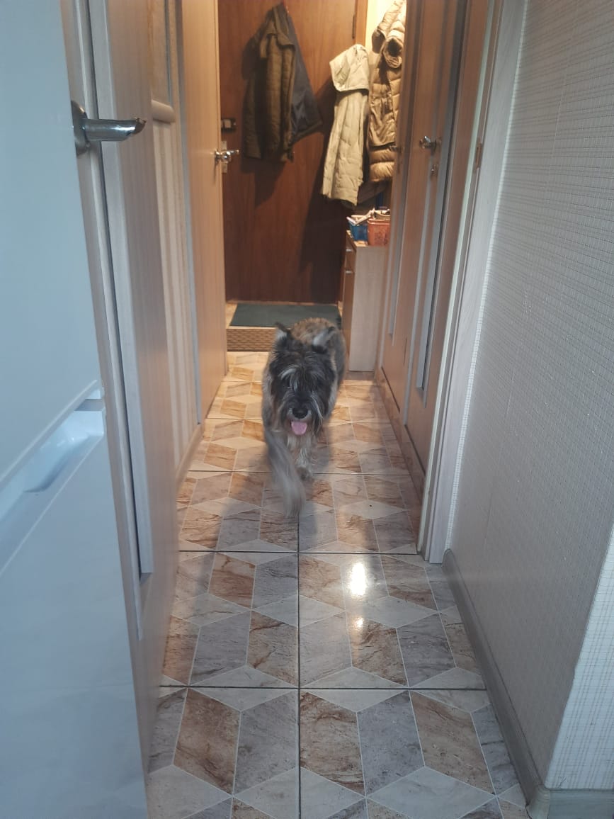Может сделать туалетные дела дома на пеленку. Может в одиночестве разгрызть мягкие игрушки, придверный коврик, любит попробовать на зуб авторучки. Очень переживает, когда на него ругаются.