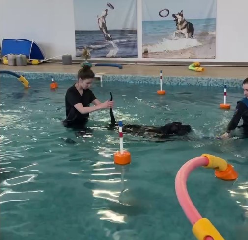 "Патрик в настоящем собачьем бассейне. Спасибо огромное всем, кто оплатил нам эту роскошь!"