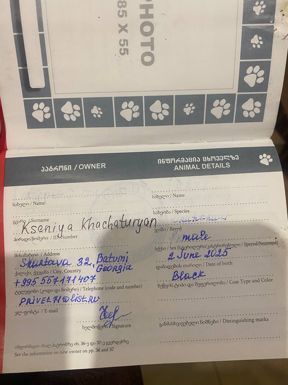 Ветпаспорт у него вон какой экзотический