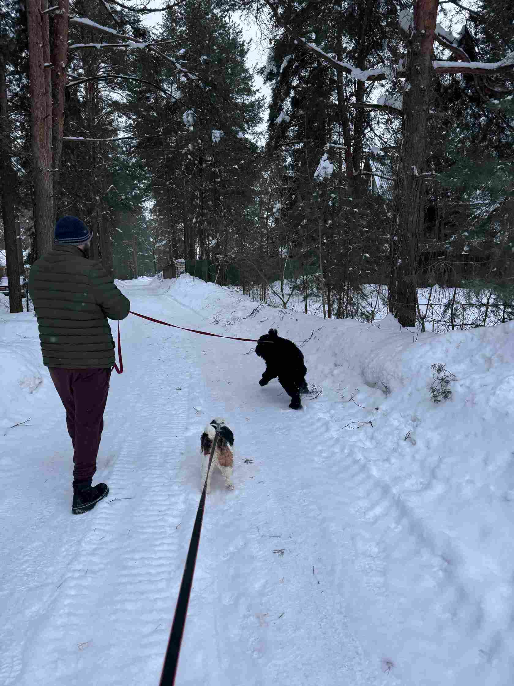 Вчера у нам выпала возможность погулять с таким замечательным мишкой. Дар в начале, конечно, потрясает своими габаритами и мехом, однако, уже через несколько минут после знакомства понятно, что с таким почтенным господином гулять будет сплошное удовольствие. Под массивной челкой скрываются добрые глаза, в которых четко написано: "Зачем ты порезала сухое легкое на такие маленькие кусочки? Я же даже не успеваю ими насладится" В паре с ним мы выгуливали Чару и мне до последнего не было понятно, кто из них кому уступает дорогу. Наверно все таки Дар