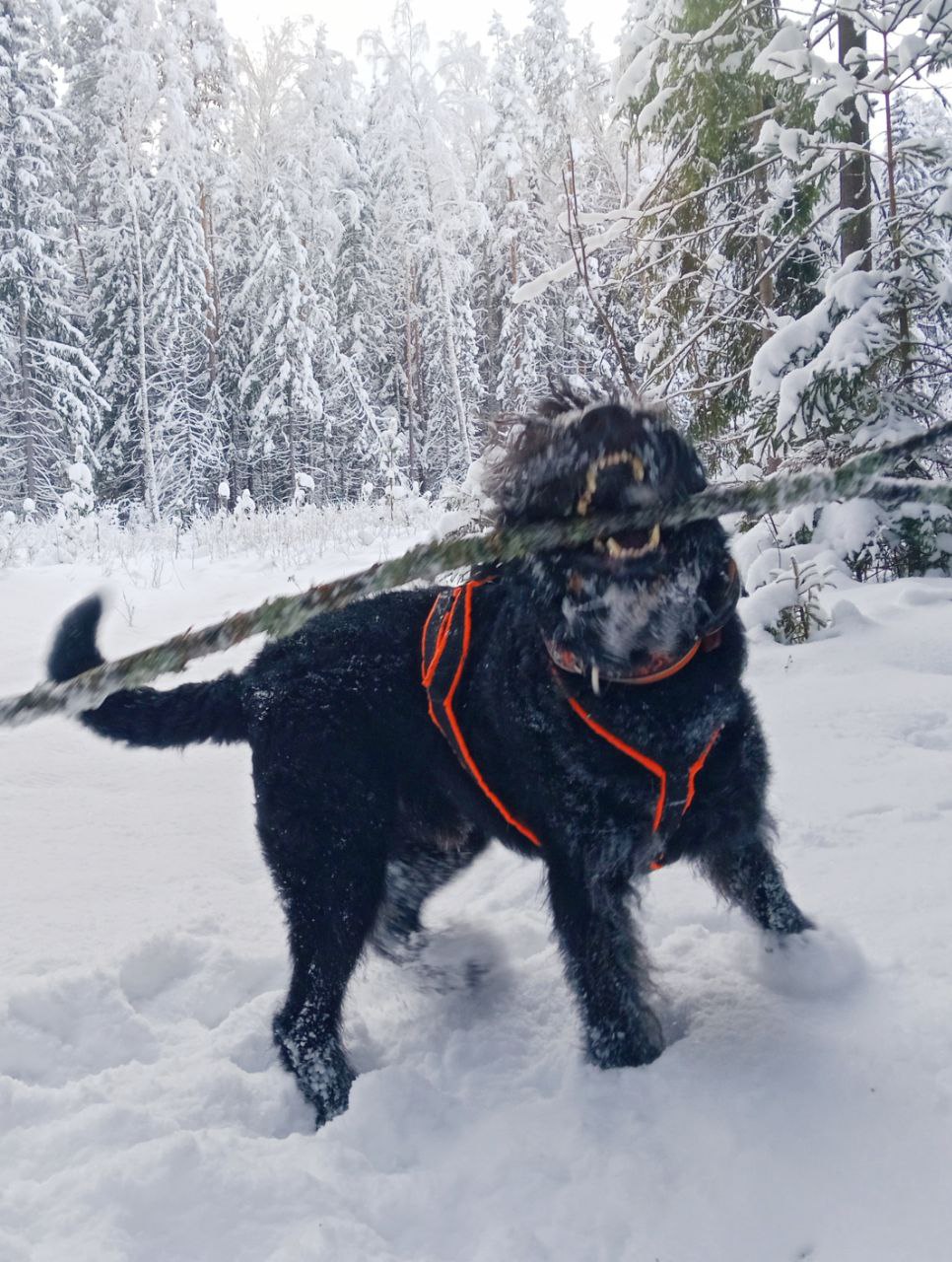 Очень уважает нашу кошку, кошка с ним стерпелась быстро, ходит иногда с нами на выгул в лес, бегает за собаками, если те поднимают зайца или рябчика, но собаки возвращаются быстро, а кошку приходится с ними же искать потом, так что выучили ещё команду "ищи кошку!"